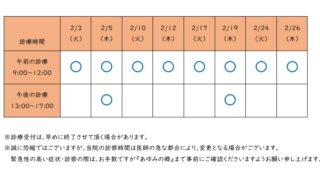 お知らせ あゆみの郷 2月の外来診療について