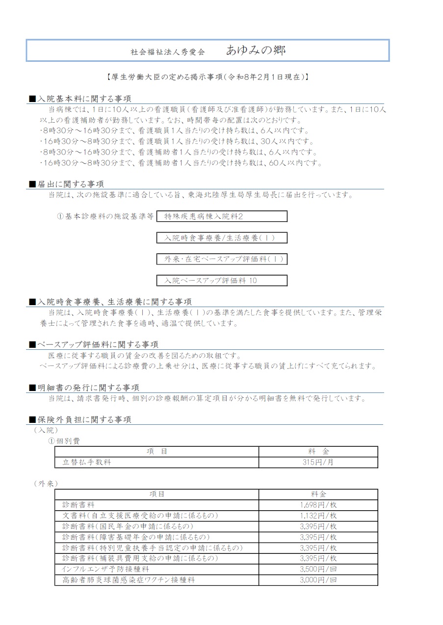 厚生労働大臣が定める掲示事項